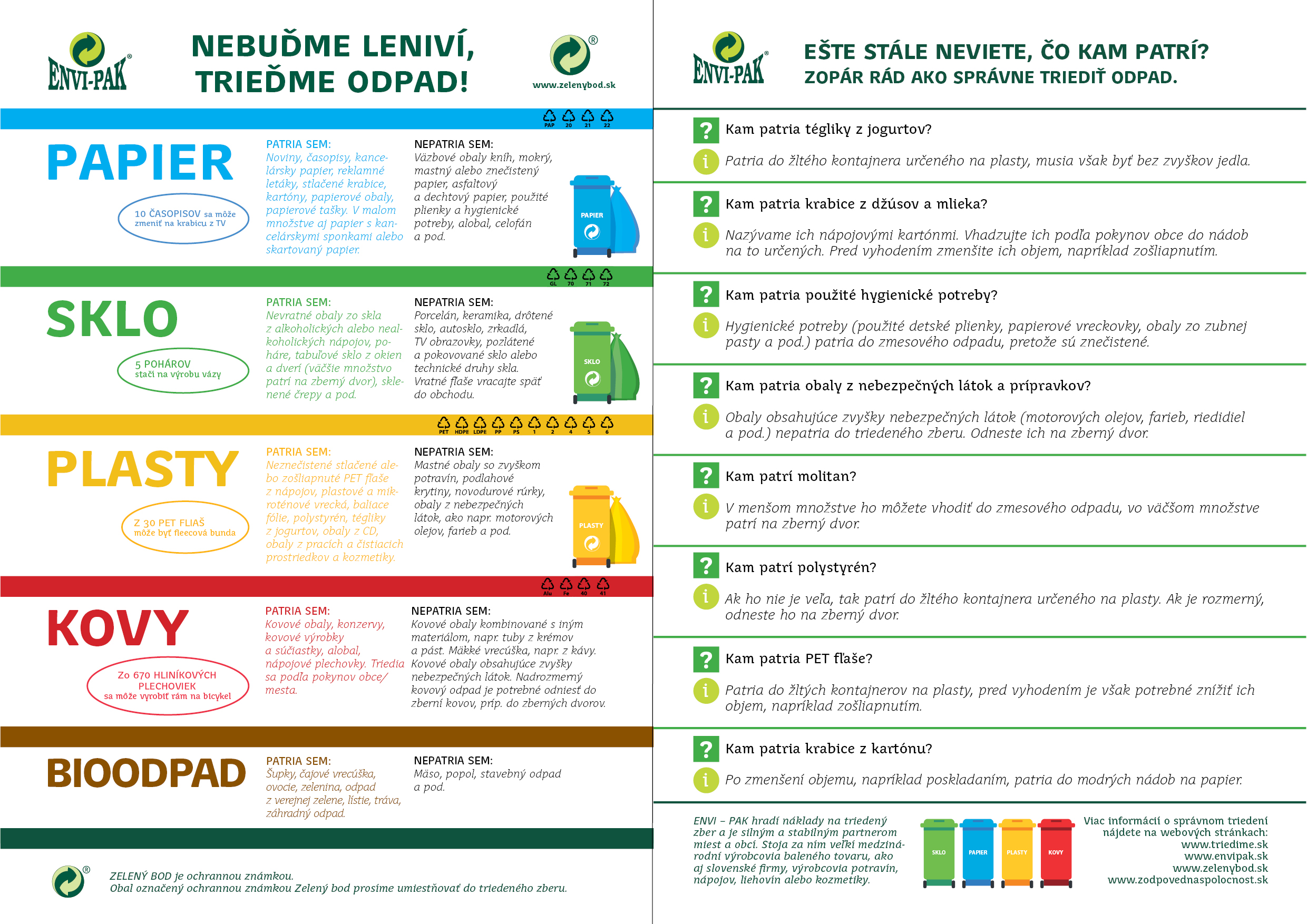 - separovaný zber plasty budú vyvážané iba v žltých kontajneroch, resp. žltých a priesvitných vreciach.